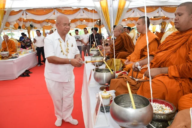 นายภิญโญ ประกอบผล อดีตผู้ว่าราชการจังหวัดตราด เป็นประธานพิธีจุดเทียนบูชาพระรัตนตรัย จุดเทียนมหามงคล และจุดเทียนนวหรคุณหน้าพระประธาน พระสงฆ์เจริญพระพุทธมนต์สวดมหาจักรจำนวน135 รูป ในเวลา16.19น.ปฐมฤกษ์จุดเทียนชัย โดย สมเด็จพระพุฒาจารย์ (สนิท ชวนปญฺโญ) เป็นประธานพร้อมทั้งนั่งอธิษฐานจิตเพื่อสวัสดิมงคล พระสงฆ์สวดคาถาจุดเทียนชัย จุดเทียนพุทธภิเษกจุดเทียนน้ำมนต์ พระสงฆ์เจริญพระพุทธมนต์ พร้อมด้วยพระธัมมจักกัปปวัตตนสูตรพระสงห์เถราจารย์นั่งปรกอฐานจิต72รูป